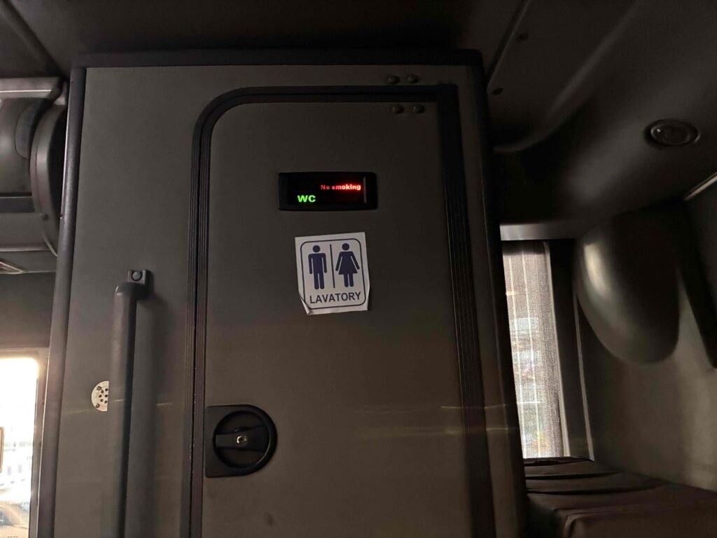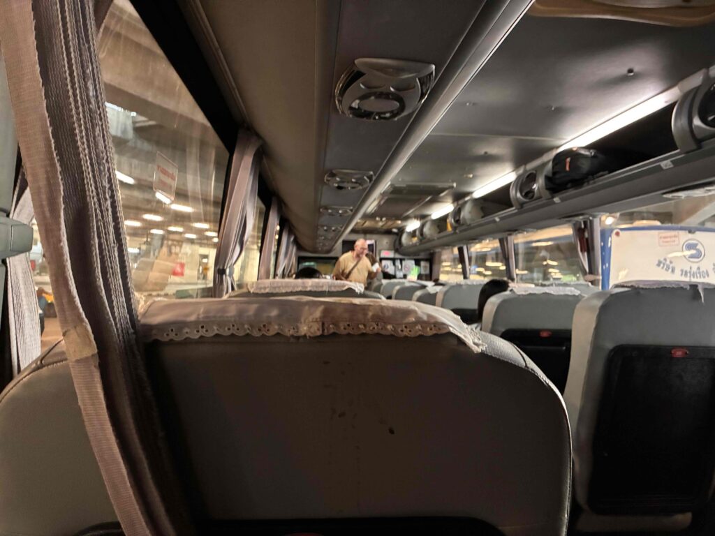 バスシートは3列です。(左に1列、右に2列の合計3列)かなりゆったりできます。中にはトイレもあるので一応安心。中は見てないけど、トイレットペーパーとかは無さそうな気がするのでティッシュは持参が安心する。あとタイはティッシュを流せないのでゴミ箱に入れましょう!